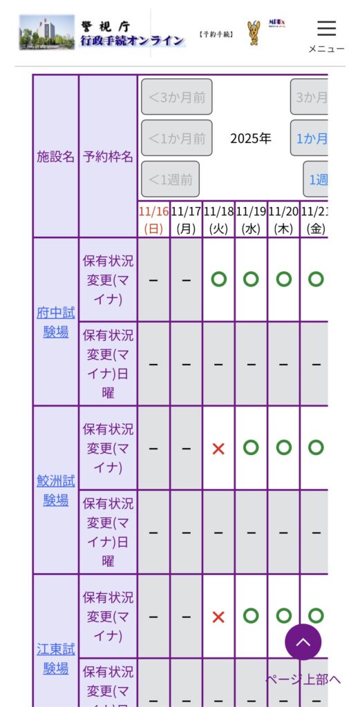 そして、予約が必要ということを知らされました😭 また、運転免許更新センターではなく、運転免許試験場の方が予約枠が多い!とのこと。